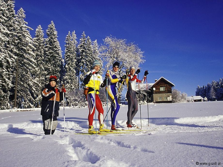 Der Einstieg in die Ortsloipe ist direkt beim Gästehaus Grudl möglich. Die Loipe verläuft direkt im Ort, über zwei Schleifen über Hirsch- und Sauberg.Gegen Voranmeldung und ab 5 Personen kann man ein besonderes Erlebnis buchen und die Loipe bei Flutlicht befahren.